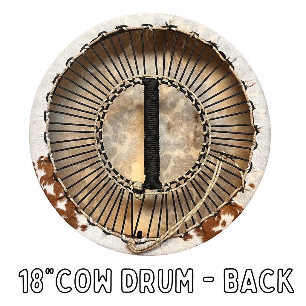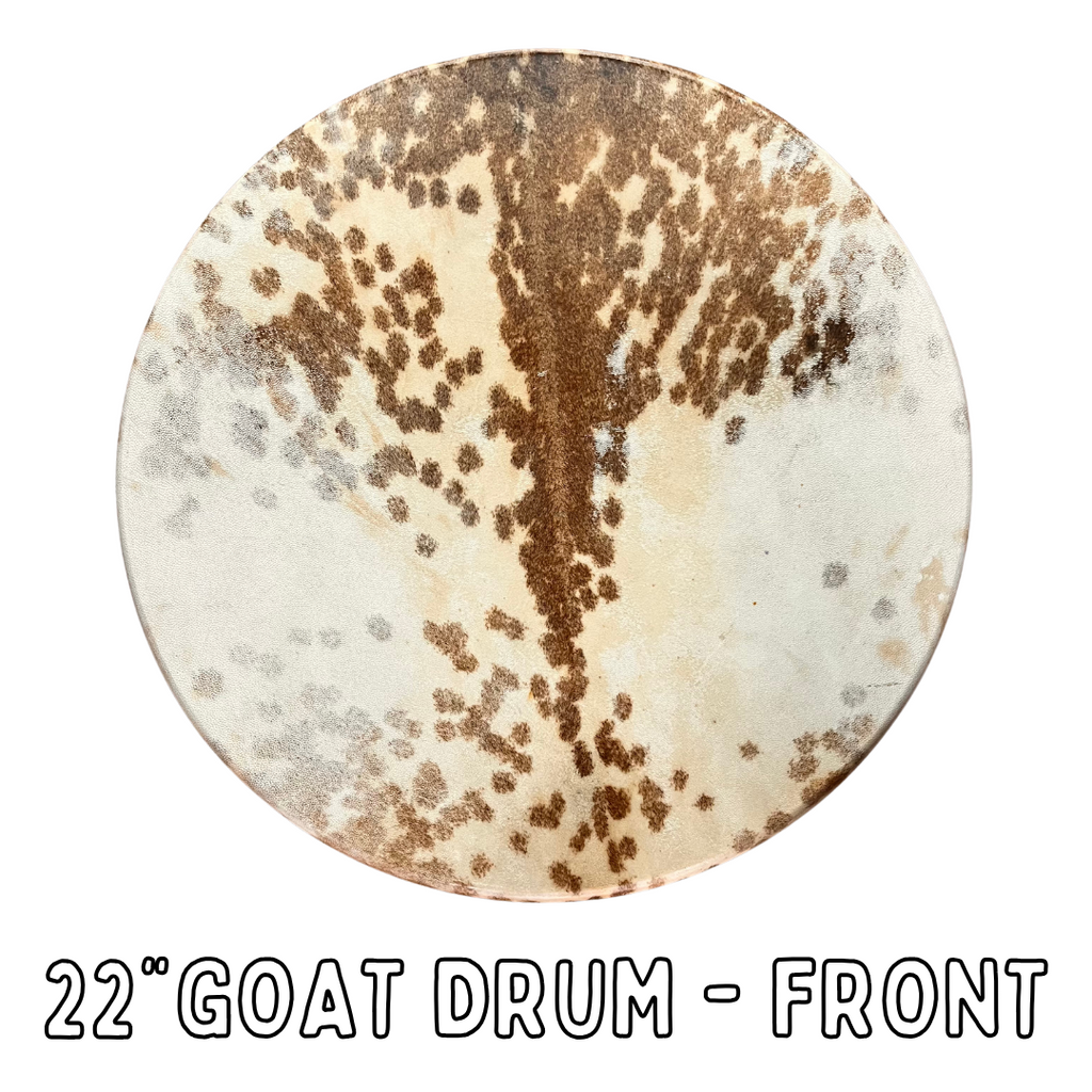The amount of animal hair on the drum also affects the quality of the sound.  Drums that are Fully Natural with the animal hair covering the full drum will be softer in sound and a warmer tone.  Only Mundo Medicine Drums with Goat and Cow skins can be ordered with Fully Natural or Shaved Top with Natural Edge options.  Bison and Elk drums can only be ordered with the Fully Shaved option.